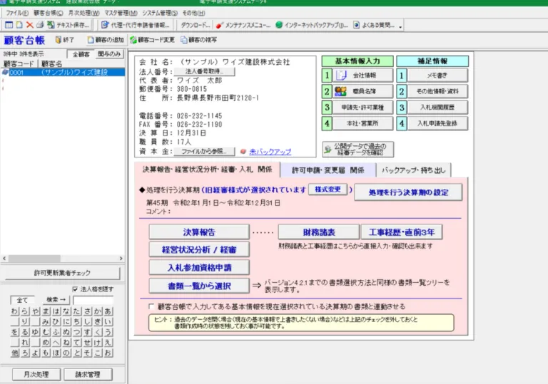 書類作成にはワイズ公共データシステムの「電子申請支援システム」を使用。